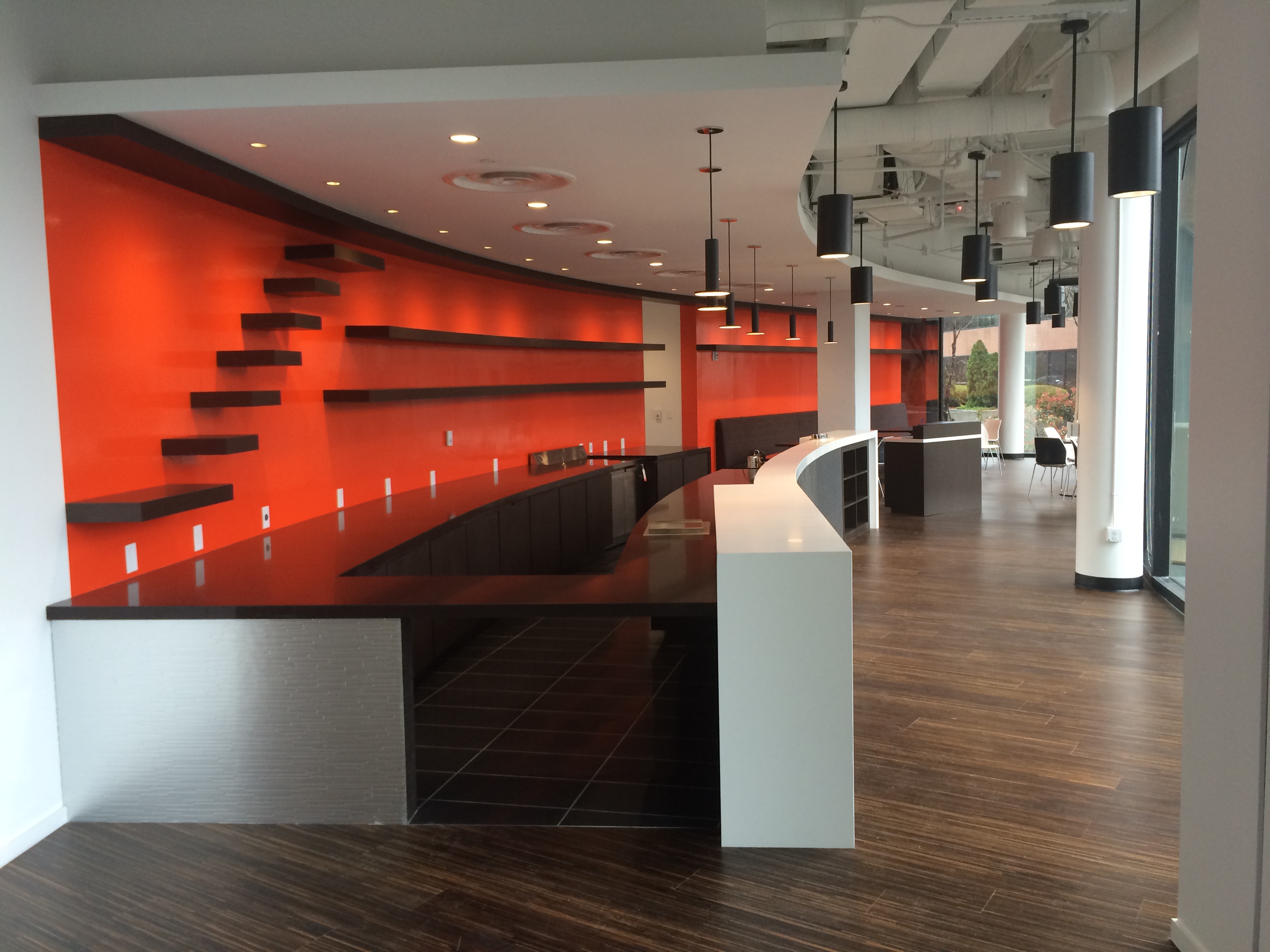 Today we received our certificate of occupancy and opened the 1st floor at the Atlanta Tech Village. Now, the 1st floor is very different from the other floors (standard floor, 2nd floor) in that it is primarily amenities. From a buildout and design perspective, the 1st floor was much more complicated due to the hardwood floors, custom millwork, and more intricate ceilings.
