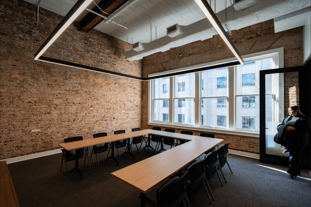 One of my favorite moments is seeing people experience the new space for the first time. Walking the halls, they take in the textures on the walls, from the plaster to the exposed brick and heavy timber. Looking out the windows, they see a mix of Art Deco, mid-century modern, and glass-and-steel buildings surrounding them. The vibe and character of this space are unlike anything else in the city.